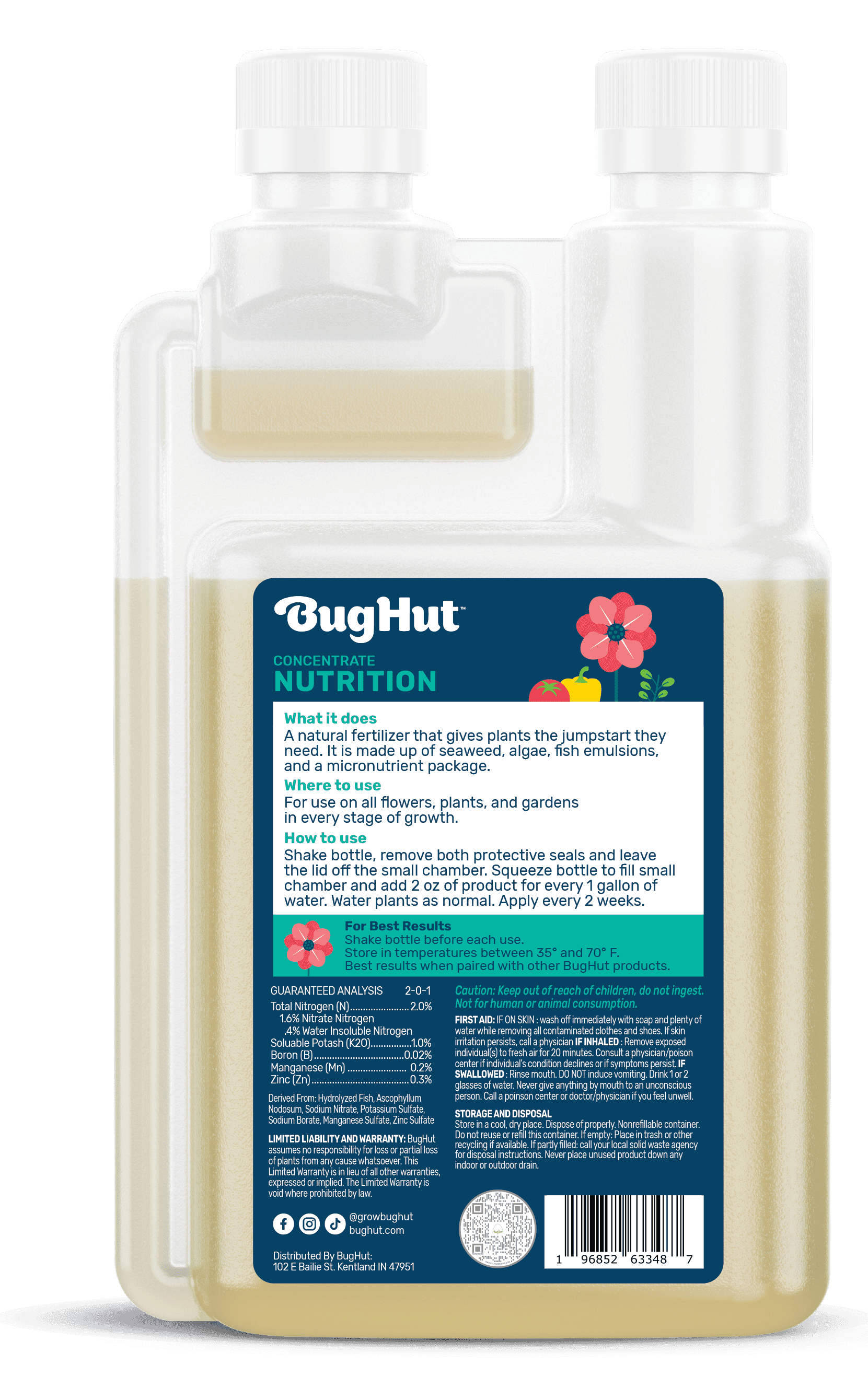 As an organic fertilizer alternative, Nutrition feeds your plants with naturally occurring ingredients including fish emulsions and seaweed. Since there are no toxic chemicals involved, Nutrition is a completely pet-safe, family-safe, and pollinator-safe organic fertilizer alternative! Give your plants a jump start while caring for your health and the planet.
